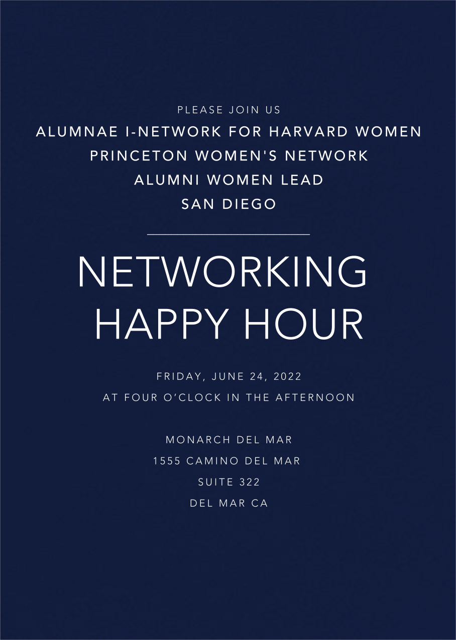 Harvard Club of San Diego: June 24 - Alumnae I-Network for Harvard Women - Monarch Ocean Pub, Del Mar